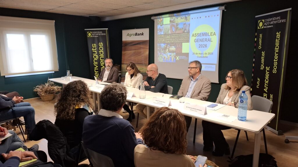 Menorca, 26 de març de 2026.- Cooperatives Agro-alimentàries Illes Balears ha celebrat aquest dijous a Ciutadella (Menorca) la jornada “PAC Post 2027: les cooperatives, claus per al futur agroalimentari de les Illes Balears”, un espai de reflexió i debat que ha comptat amb la presència d’autoritats autonòmiques i insulars, així com de representants del sector agrari.